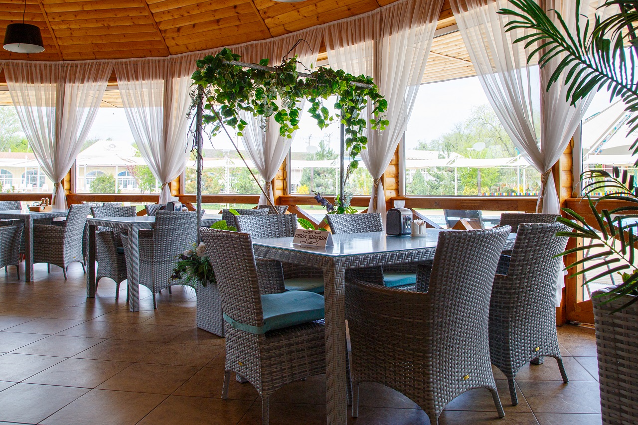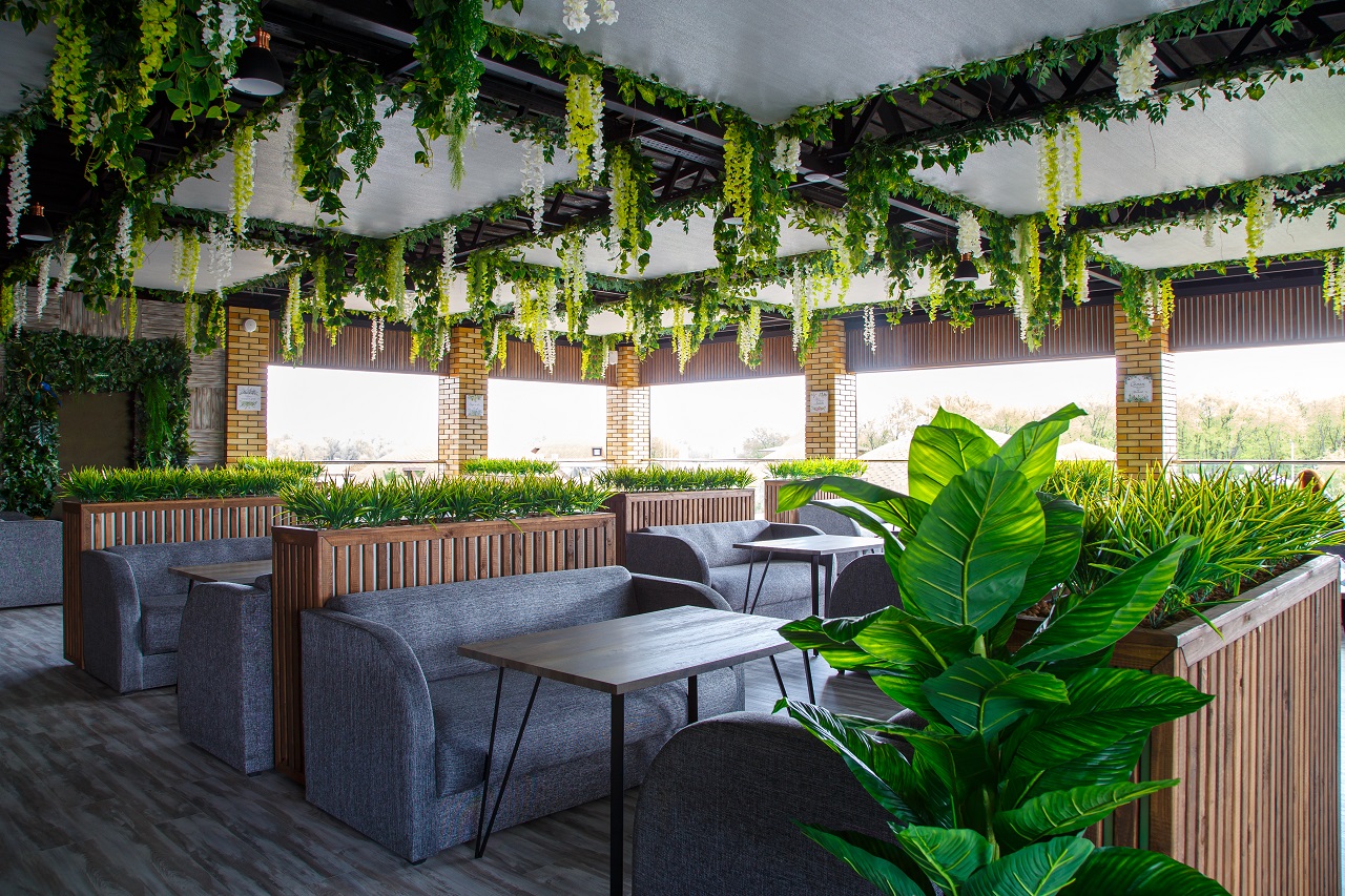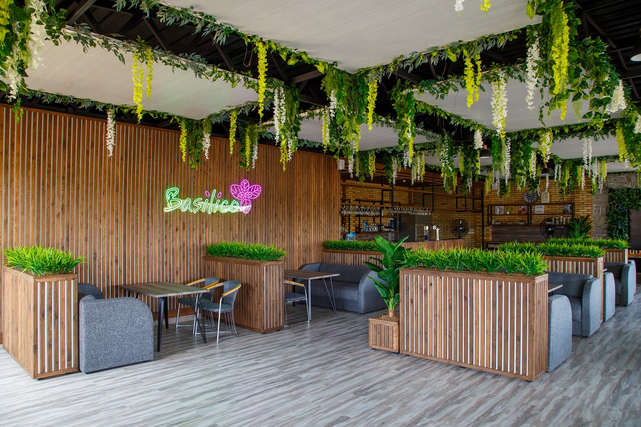 Легкий и живой декор открытого летнего Ресторана «Basilico» идеально подходит для деловых и дружеских встреч, романтического тет-а-тет, семейного ужина или бокала вина с легкой закуской.