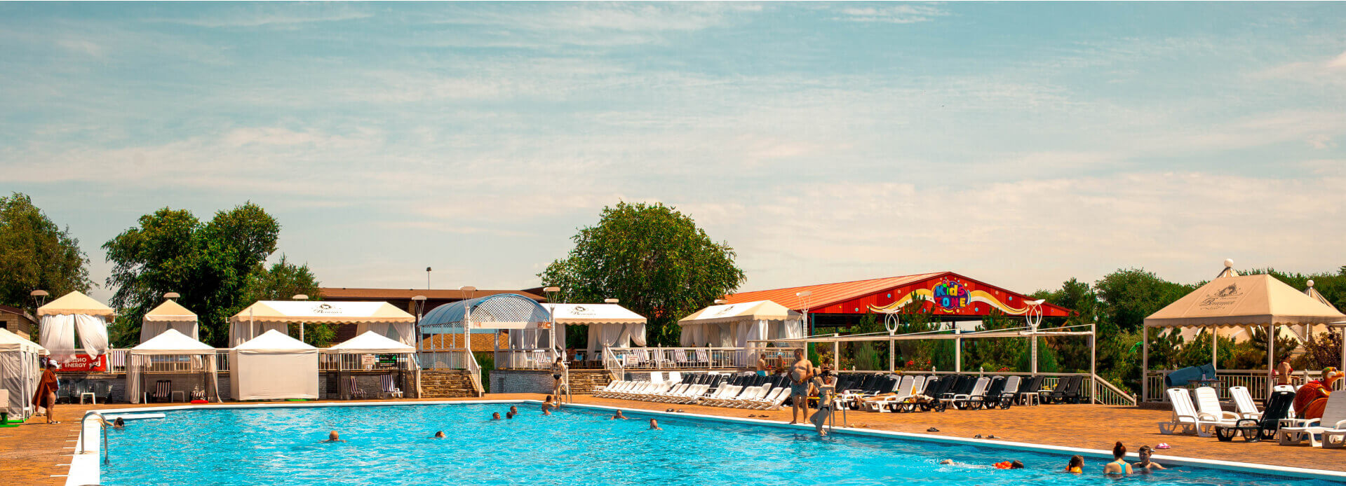 Смотреть галереюК услугам любителей солнечных ванн и водных развлечений 2 открытых бассейна, водные горки и 2 детских бассейна.