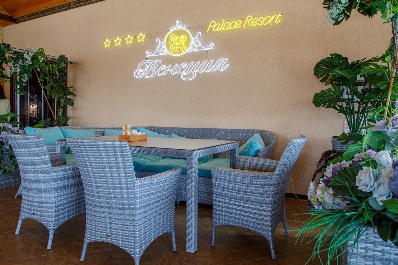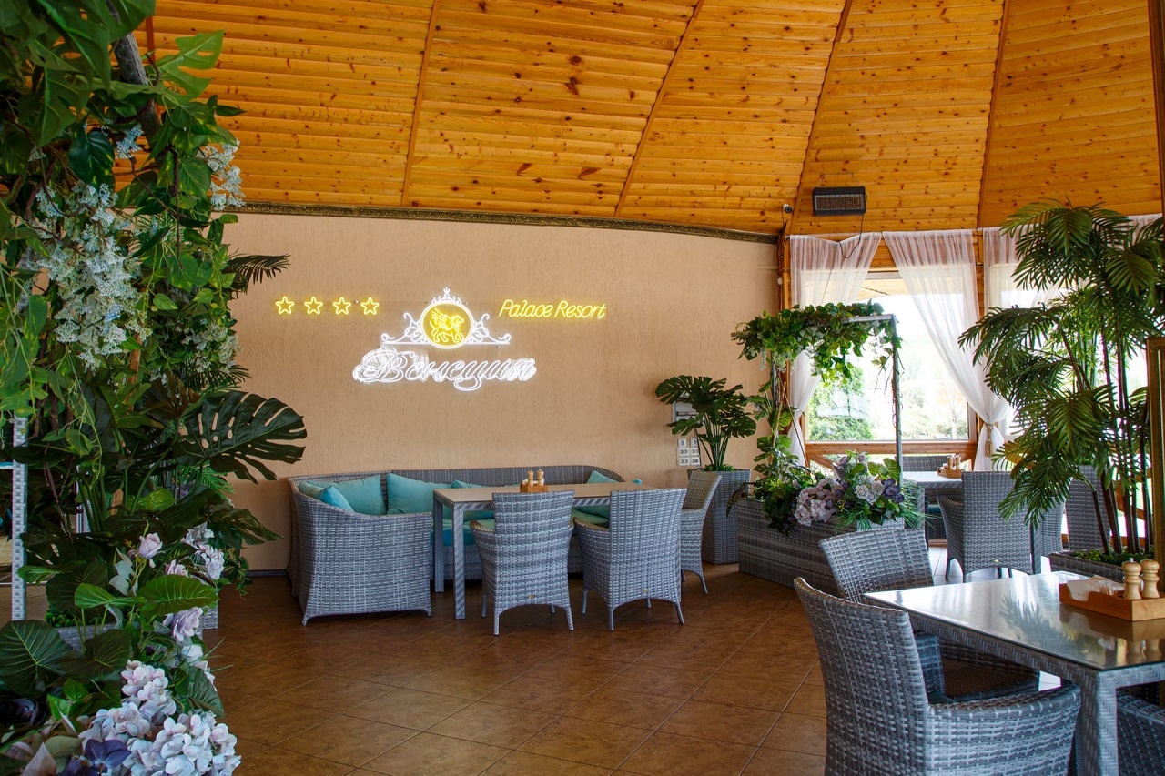 Palace Resort «Венеция» построена на берегу реки Северский Донец и занимает территорию 40 000 кв.м, отличается необычной архитектурой и великолепным пейзажем. Просторные парковые аллеи с яркими ландшафтами, большая терраса - атмосфера «венецианских красот» окутает гостей комфортом и уютом.