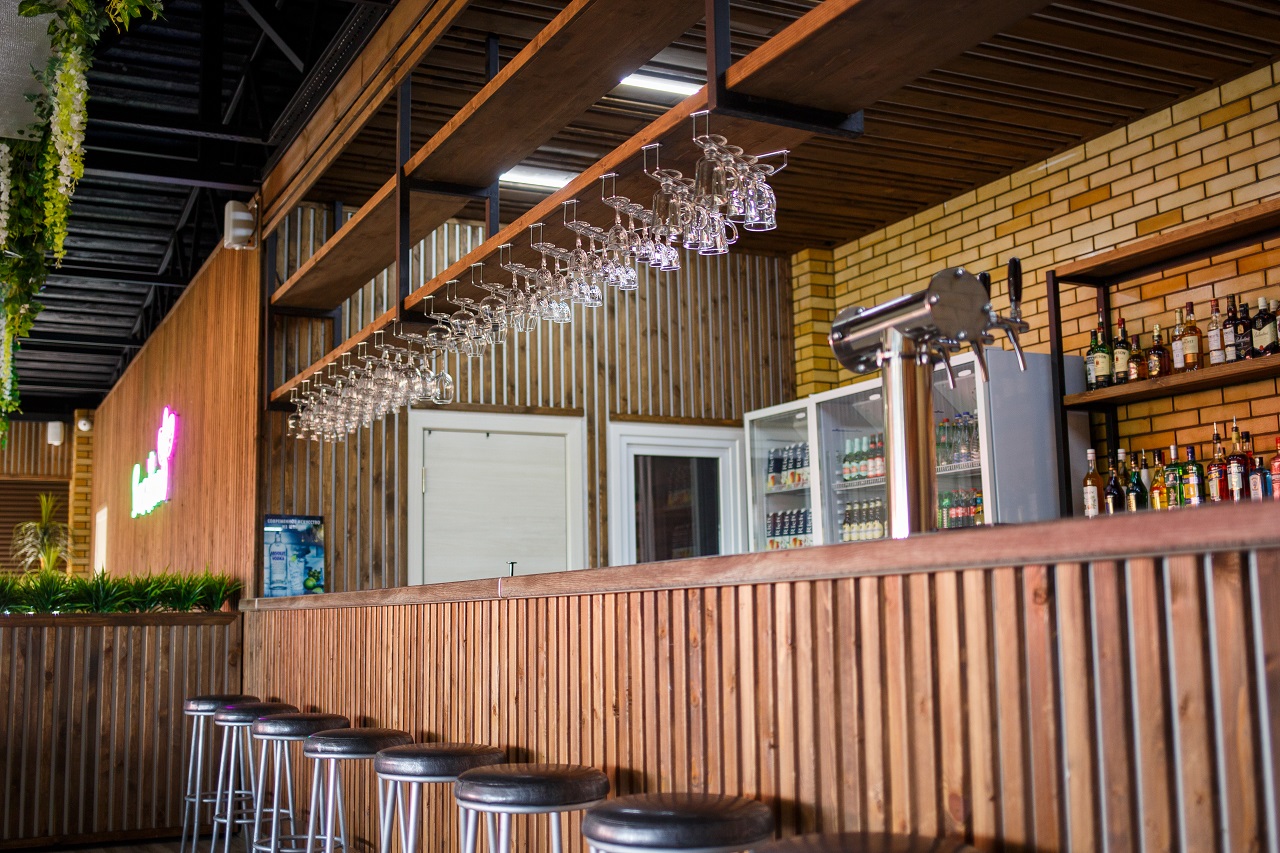В зале, который днем полон солнечного света, а вечерами — игрой теней, очень комфортно наслаждаться едой.